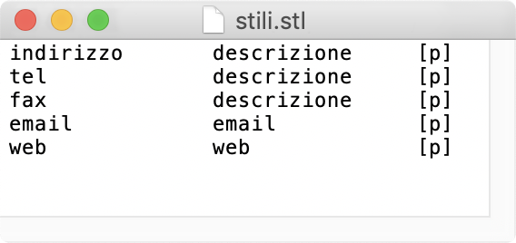 Nell’esempio i campi email e web sono associati a uno stile paragrafo diverso dagli altri.