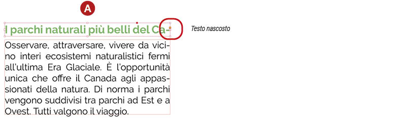 Durante l’impaginazione automatica InDesign non sposta i campi, ma li riempie soltanto e se il testo è più lungo del campo compare Testo non inserito (A).