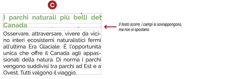 In questo modo durante l’impaginazione automatica il campo con righe variabili si allunga, mostra tutto il contenuto, si sovrappone al successivo e i campi non si spostano (C).