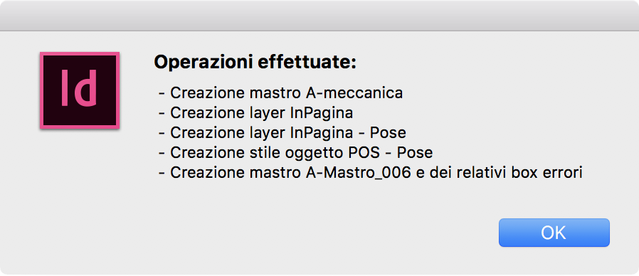 Ora sono stati creati livelli e pagine mastro essenziali a InPaginaPRO.
