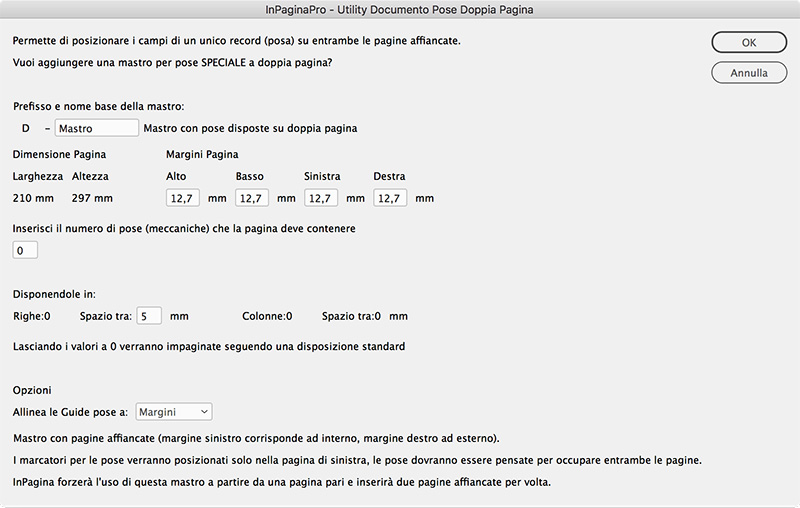 Creare la pagina mastro che servirà per l’impaginazione automatica aprendo dal menu principale Mediabook > InPagina Pro > Utility Documento Pose.