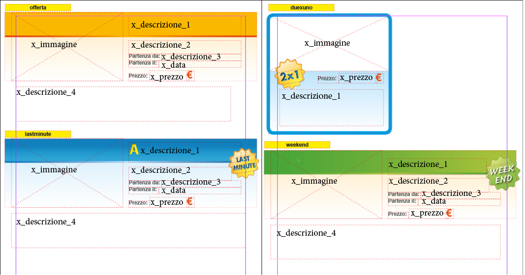 Durante la fase di impaginazione le informazioni di ciascun prodotto verranno dislocate nei campi previsti nella relativa meccanica specificata.